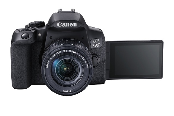 • The EOS 850D also incorporates in-body electronic image stabilization to enable “Movie digital IS” for steady vlog or handheld movies. The 3.0-type 1.04 million-dot Vari-angle touch panel LCD monitor makes it easy to shoot video from high or low angles