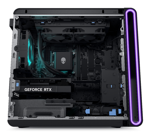 Gamers, you’ve heard! The Alienware Area-51, the purest representation of the brand, returns, built with deliberate intention and mindful consideration. It’s designed to honour the demands of those who seek godlike performance, whether that means breezing through Alan Wake 2 or dominating with pentakill streaks in Valorant, resonating with your favourite esports athletes. Introducing the Intel Core Ultra K-Series processors to Alienware desktops, alongside the powerful NVIDIA GeForce RTX™ 50 Series (support for up to NVIDIA® GeForce RTX™ 5090), powered by NVIDIA Blackwell architecture, this machine, simply put, delivers interstellar performance. In other words, it is the quietest, coolest-running, and highest-performing desktop in the Alienware lineup, blending state of the art thermals and industry-standard overall architecture. Long story short, it breathes the mantra, “gamers first”.