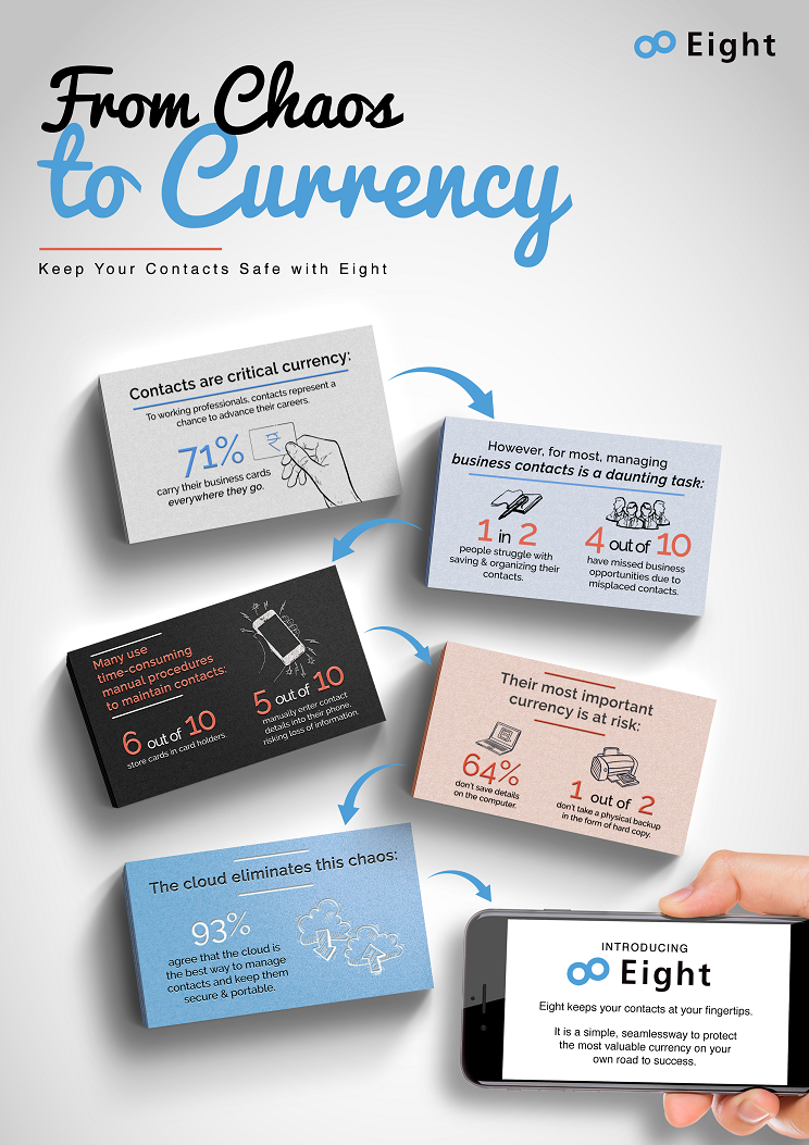 Speaking at the reveal of the survey findings, Edward Senju, Executive Producer of Eight, said – “In the Indian market, who you know can make or break your career, and business cards play a significant role in keeping on top of things; they remain the key tool to expanding one’s professional network, but are close to useless if not managed properly. Through this survey, we have gained some wonderful insights into the management of business cards in India, and we actually found a lot of similarities between the Indian and the Japanese market. This assures us that Indians are ready to embrace our business card management software in order to boost their careers. With Eight, we want to help Indians achieve their goal of making every connection count.”