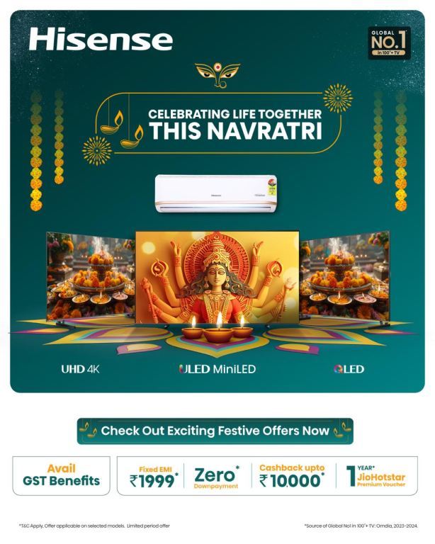 Speaking on the announcement, Pankaj Rana, CEO, Hisense India, said: “Festive season in India is a time for upgrading lifestyles, and we want to make advanced technology accessible and affordable for every household. Our offers on TVs and ACs are designed to provide value, convenience, and peace of mind to customers, whether they are purchasing online or offline. Through these offers, we aim to strengthen our presence across Tier 1, Tier 2, and Tier 3 cities, bringing world-class technology closer to Indian families.”