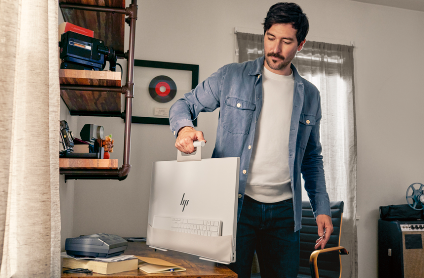 To facilitate hybrid lifestyle at its best, the Envy Move AIO PC comes with a rechargeable battery to allow users to unplug the PC and carry on with the day, in and around the house. The Intel Unison allows for easy phone-to-laptop connectivity. The PC is equipped with audio from Bang & Olufsen, along with Adaptive Audio that adjusts volume to the user’s distance for clear sound.