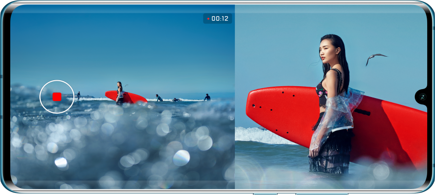 HUAWEI P30 Pro brings in a refreshing way to shoot and view videos. The HUAWEI Dual-View Video feature uses multiple cameras at once to capture videos, enabling the user to shoot a video from different angles, at once.  While one camera shoots a wide angle, the other camera captures a close-up. Therefore, now it’s possible to see two new perspectives on one single screen. In this mode, the camera located closer to the lower portion of the device captures it all with a wide field of view, while the camera installed more closely on top part of the device, capture a close-up. The user may freely adjust the level of magnification as well. This mode of shooting is particularly useful while capturing large-scale events such as sporting matches and concerts. Give the subject the attention of a zoomed-in shot without missing the big picture—all from the comfort of your “director’s” chair.