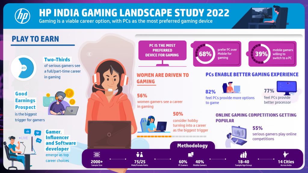 Indian Gamers are showing a strong interest towards a career in gaming, according to The HP India Gaming Landscape Study 2022. The study covering over 2000 respondents across 14 Indian cities highlighted that gamers feel gaming offers good earnings prospects along with multiple career choices.