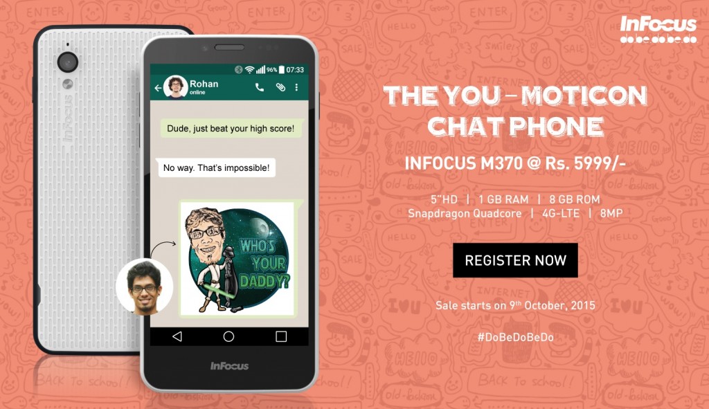 Gone are the days when chatting was limited to confusing and generic emoticons and boring texts. US-based tech pioneer InFocus today announced InFocus M370- exclusively on Snapdeal. The device comes preloaded with a feature that let users turn their faces into emoticons, making conversations interactive, exciting and personal like never before!