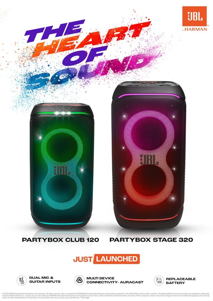 The JBL PartyBox Club 120 and JBL PartyBox Stage 320 will be available on JBL.com for price points Rs. 39,999 and Rs. 54,999 respectively.
