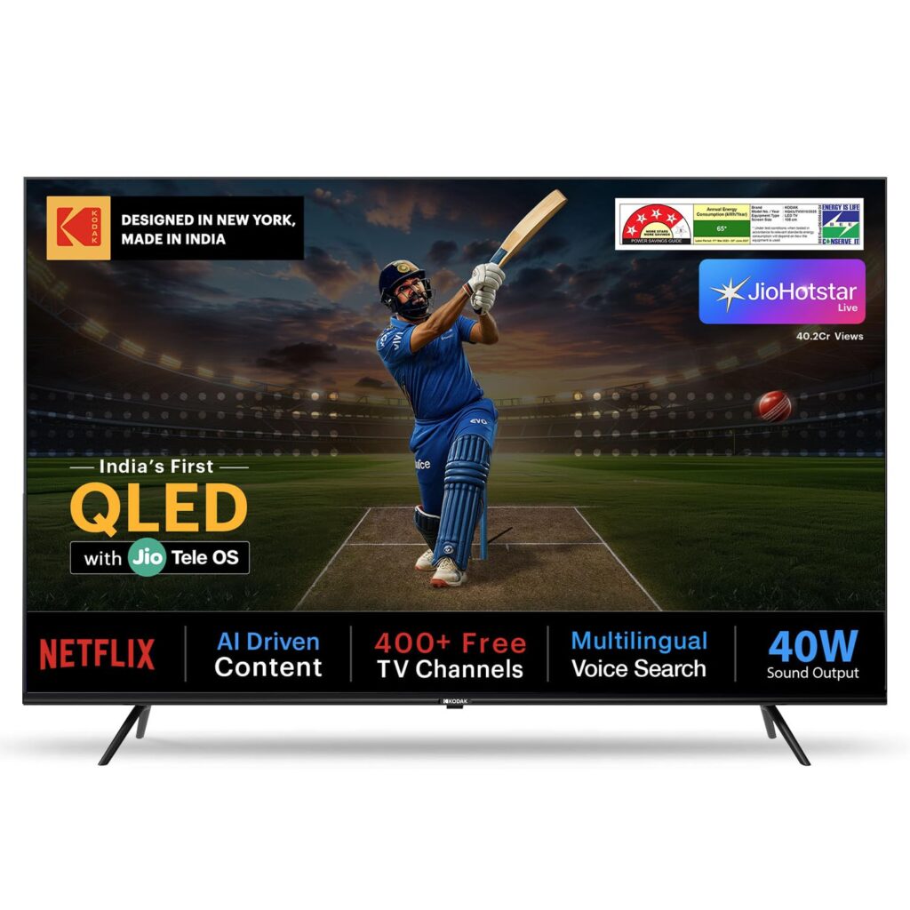 With increasing appetite for customized and region-specific content, the need for a smarter and connected experience has never been more critical. Recognizing this shift, Kodak TV India expands its lineup by introducing its first-ever JioTele OS powered 43-inch QLED Smart TV, catering to the diverse content preferences of Indian consumers. The new Kodak QLED 4k JioTele OS TV features AI-recommended content, a dedicated sports mode, free 300+ live channels, and more – all wrapped in a sleek, bezel-less design, providing an elevated experience for every Indian household at an affordable price point. Available exclusively on Amazon starting today.