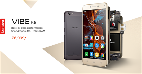 With over 400,000 registrations in the very first week of launch, Lenovo Vibe K5 will go on sale tomorrow exclusively on Amazon.in at 2 pm. A direct successor to Lenovo A6000, Vibe K5 comes power packed with a 64-Bit Qualcomm Snapdragon 415 Octacore CPU combined with 2GB of RAM and 12.7cm (5) high-definition display and is competitively priced at INR 6999.