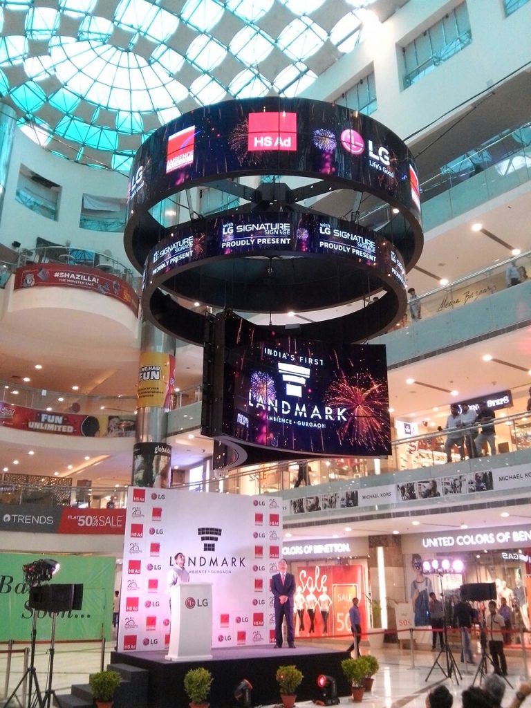 In yet another feat in the field of display technology, LG Electronics India today introduced an innovative Signage. The Landmark Signage is the first of its kind in India made using 70 custom-made curved OLED panels. This innovative Signage display is conceptualized and executed by HS Ad India in collaboration with LG Electronics, LG CNS and key Ambience Group Associates.