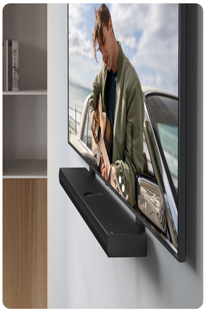A dedicated bracket for the S70TY model allows users to place the soundbar directly beneath the QNED TV for a refined appearance. This bracket provides a convenient solution for direct attachment, eliminating the need to drill holes in the wall during installation. The bracket allows customizable wall-mounting of the S70TY soundbar at various heights or locations, guaranteeing an aesthetically ideal setup, great convenience and an optimal sound experience.