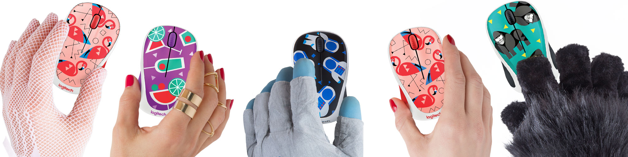 This year’s collection of bold patterns and colors brings a touch of whimsy to the Logitech® M238 Wireless Mouse designs. These wireless mice reflect the fun, boundary-pushing attitude of today’s pop culture.