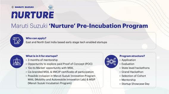 Through ‘Nurture’, the Company aims to engage with startups at the budding stage and support them to develop innovative solutions for the automobile and mobility sector. Receiving extensive mentorship by domain experts, select startups could get an opportunity to launch their solutions in Maruti Suzuki’s business ecosystem.