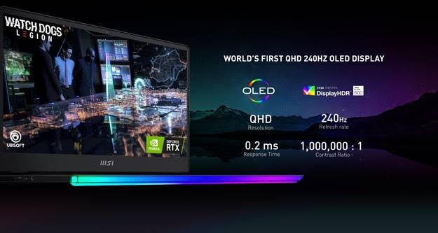 MSI has included the world’s first Samsung Display QHD 240Hz OLED display on its new gaming laptop. It balances high resolution and refresh rate, and delivers all the advantages of OLED, including super-low response time, super-wide color gamut and super-high contrast ratio.