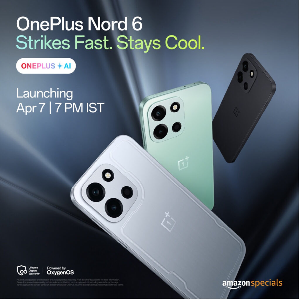 The full specifications of the OnePlus Nord 6 will be revealed on April 7, 7PM IST, with availability details to follow shortly.