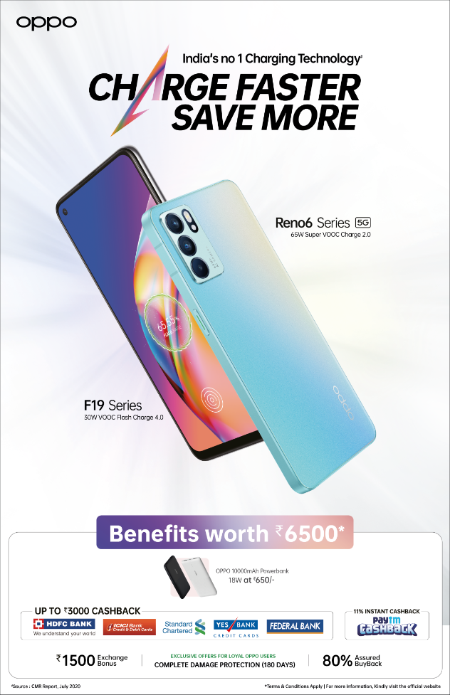 Speaking about OPPO’s Independence Day ‘Charge Up campaign, Damyant Singh Khanoria, Chief Marketing Officer, OPPO India said, “OPPO is renowned as the global leader in Charging and Battery technologies. As of June 30, 2021, OPPO has already applied for over 3,000 patents related to fast charge technology and we continue to explore how we can bring meaningful innovations to our consumers. The ‘Charge Up’ campaign is an opportunity for our consumers to get their favourite OPPO Reno6 Pro 5G or F19 series smartphones”.