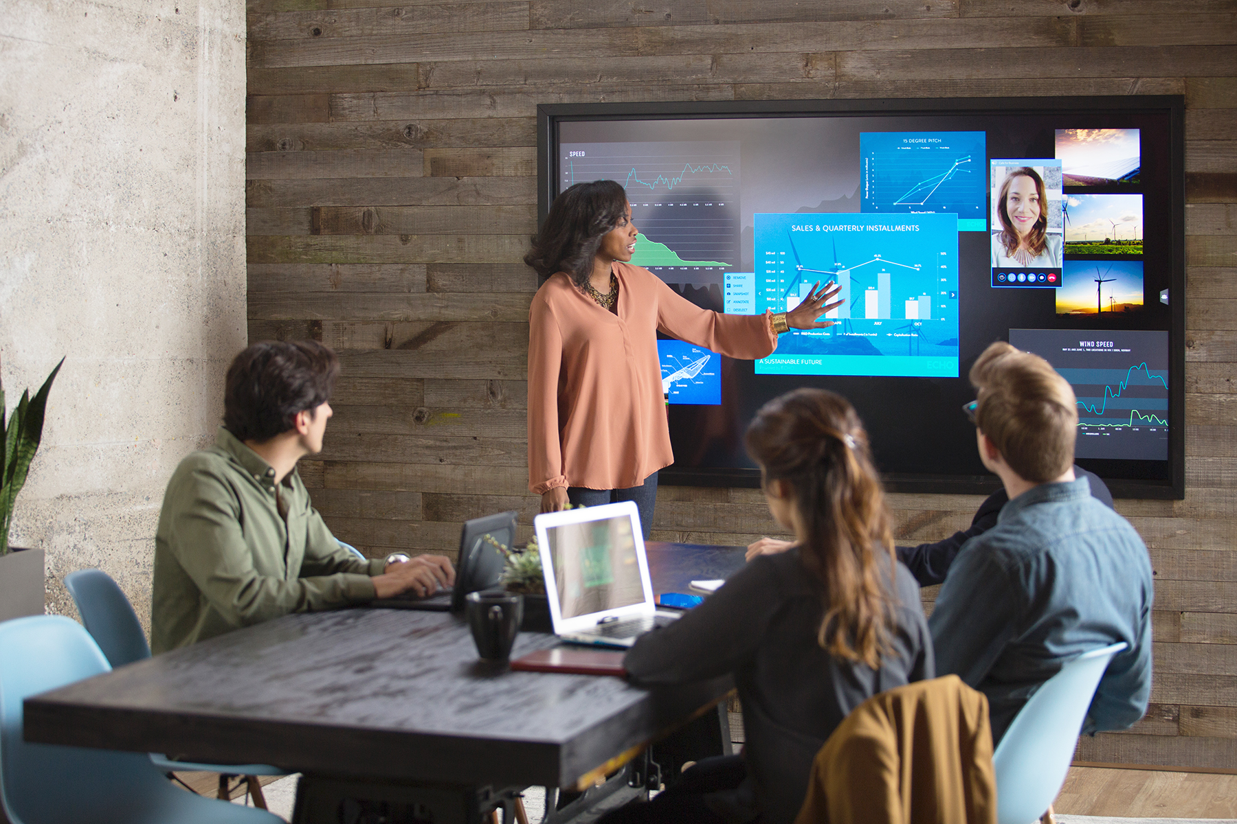 Today’s collaborative decision-making process is increasingly reliant on combining data from multiple locations and sources in real time. With a stunning screen resolution and a user experience that is immersive and engaging, this larger screen serves a need in the market for larger, fully integrated Visual Workplace solutions for a new generation of multi-purpose conference rooms. The integrated digital canvas allows users to share, annotate, and edit office docs, web apps, multimedia files, and video from multiple simultaneous sources including laptops and mobile devices. Content can be positioned and resized dynamically through multi-user touch. These capabilities along with a larger, standard screen size offers a breakthrough collaboration experience that raises team productivity and engagement to a new level.