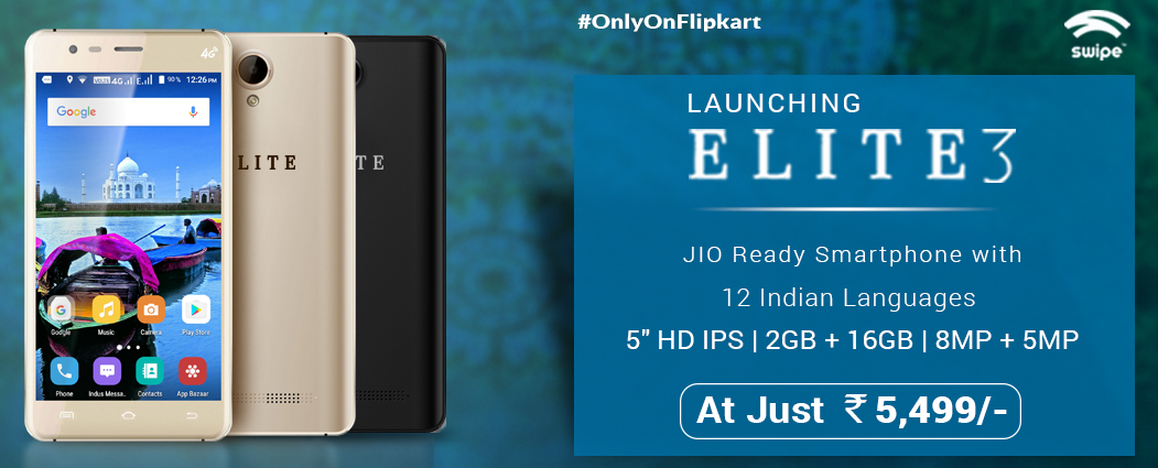 Swipe Technologies announced the launch of its newest member in the Elite series of smartphones – the ELITE 3, which promises to take the mobile phone experience to the next level with its awesome built and incredible features available at an affordable price tag of Rs. 5,499/-. Operating on the latest Android Marshmallow 6.0 OS, ELITE 3 is the smartphone for the aspiring, upwardly mobile Indian youth. Post successful traction that Swipe has received for ELITE Star, as per internal insights, 70% of consumers have deployed regionalized OS in ELITE Star. Having witnessed such a great response, Swipe has again associated with Indus OS for ELITE 3. This product is designed for today’s youth & is targeted to the core segment of smartphone market. This phone is a JIO ready smartphone & is eligible for the Jio Happy New Year Offer.