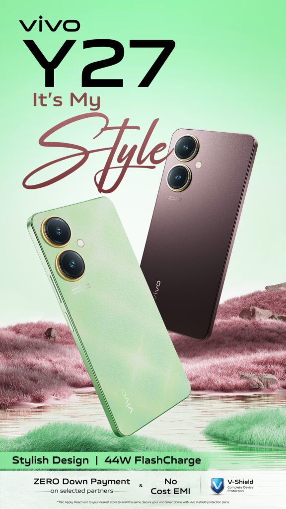 vivo, the innovative global smartphone brand, today unveiled its latest addition to the Y series lineup in India. Designed to offer elegance complemented by substance, vivo Y27 boasts a sleek 2.5D glass body design with an impressive 16.86cm (6.64-inch) FHD+ sunlight display. For a seamless experience, the smartphone brings 6 GB + 6 GB Extended RAM support with 44W FlashCharge.