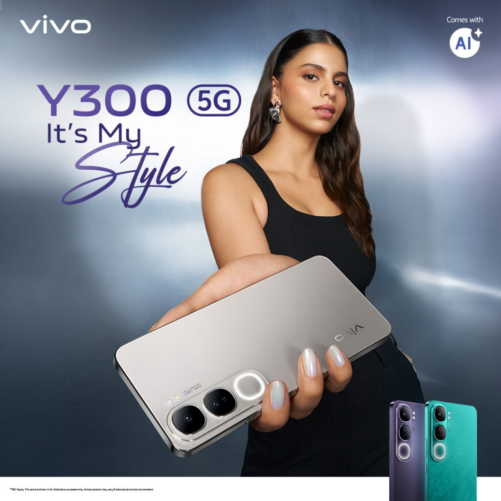 vivo, the innovative global smartphone brand, today extended its premium Y-series lineup with the launch of the all-new vivo Y300 in India. The newly launched smartphone embodies a stylish titanium-inspired design, which is bound to make it stand out. Adding to the excitement, vivo announced Suhana Khan as the new face of its Y-Series smartphones, including the Y300 5G, bringing her youthful energy and charm to the brand. The smartphone is empowered by a capable Sony IMX882 main camera, which when paired with the AI Aura Light and 2x portrait feature, allows users to capture sharp, natural-looking portraits. The smartphone also comes with advanced AI camera features including AI Erase and AI Photo Enhance that helps improve the clarity of pictures. It is further equipped with 80W FlashCharge for fast and efficient charging.