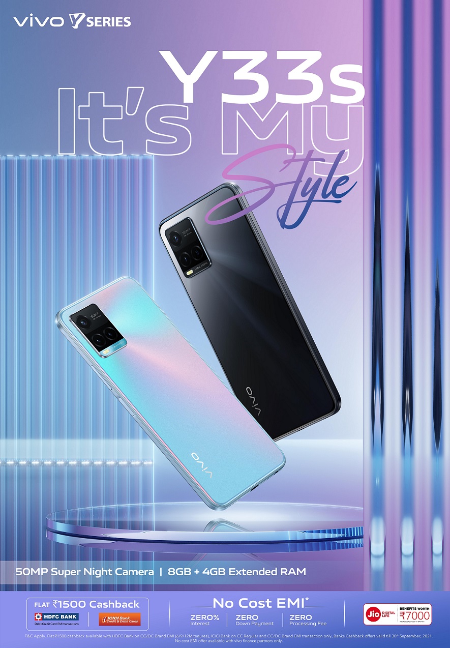 Commenting on the launch, Nipun Marya, Director- Brand Strategy, vivo India said, “The all new Y33s, reaffirms vivo’s commitment of making innovative technology accessible to all consumers in the country. Y33s has been designed to provide premium and seamless experience to customers with segment-leading features like the 50MP Super Night camera, ultra slim design and powerful 5000mAh battery. We are confident that Y33s will be a perfect choice for consumers, who are looking for a comprehensive product offering that is innovative and has a perfect blend of style and performance”