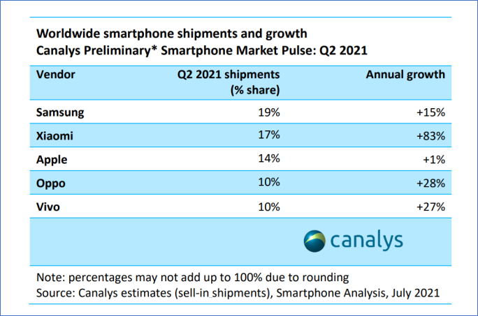 vivo Ranked Among Top 5 Global Smartphone Brands in Q2 2021, According to Canalys