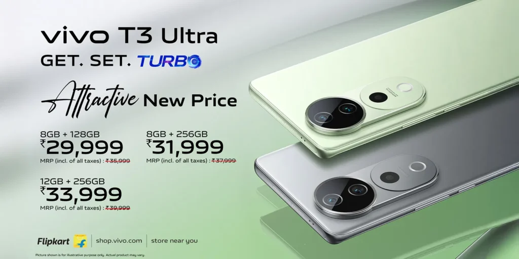 vivo, the innovative global smartphone brand, today announced a price drop of INR 2,000 for its top-of-the-line series T offerings, the vivo T3 Pro and vivo T3 Ultra. Starting today, the vivo T3 Pro will be available at an exciting new price of INR 22,999/- for the 8+128 GB variant and INR 24,999/- for the 8+256 GB variant (all prices inclusive of taxes). The vivo T3 Ultra, on the other hand, will now be available for purchase at INR 29,999 for the 8+128 GB variant, INR 31,999 for the 8+256 GB variant, and INR 33,999 for the 12+256 GB variant (all prices inclusive of taxes). Consumers can purchase the devices from vivo India e-store, Flipkart, and all partner retail stores.