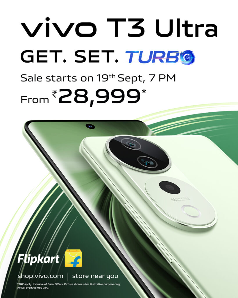 HDFC Bank users can also avail a flat discount of INR 3000*, making the effective price for the T3 Ultra 5G INR 28,999 for the 8GB + 128GB variant, INR 30,999 for 8GB + 256GB variant, and INR 32,999 for the 12GB + 256GB variant. Consumers can purchase the smartphone starting September 19, 2024, starting 7:00 PM, across Flipkart, vivo India e-store and partner retail stores.