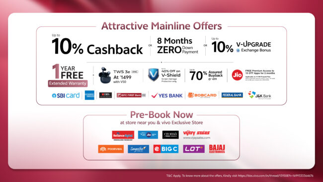 Consumers can pre-book the V50 starting today at vivo exclusive stores and partner retail stores. To make the purchase more exciting, consumers can avail any of the below offers:
